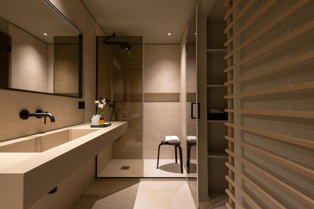 Il design contemporaneo è esaltato da un ampio piatto doccia, pensato per offrirvi un'esperienza rigenerante, il lavabo ampio e funzionale, è affiancato da rubinetterie di design che sottolineano l'attenzione del dettaglio.